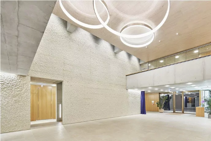 Wittfoht Architekten aus Stuttgart haben in unweit entfernten Besigheim ein Verwaltungsund Sozialgebäude für den Bauunternehmer Karl Köhler gebaut. Die Halle in dessen Grundrissmitte dient als multifunktionales Zentrum für die Mitarbeiter.
